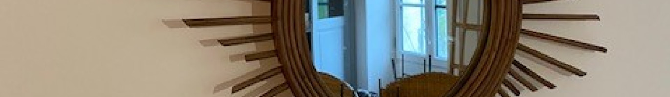 Miroir en rotin foncé naturellement, inspiré par une médaille décernée durant l'Empire Ottoman !
