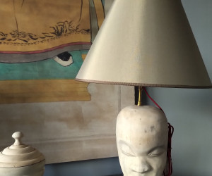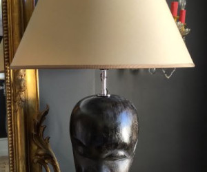 Grande lampe en bois blond ou noirci vendue avec abat-jour sur mesure .d'autres options possible en abat jour sur demande
