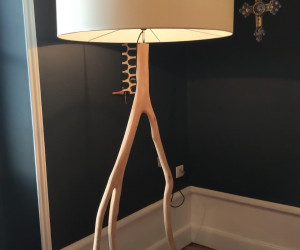 Bois d'eucalyptus blanchi transformé en lampadaire provenant de plantations européennes
